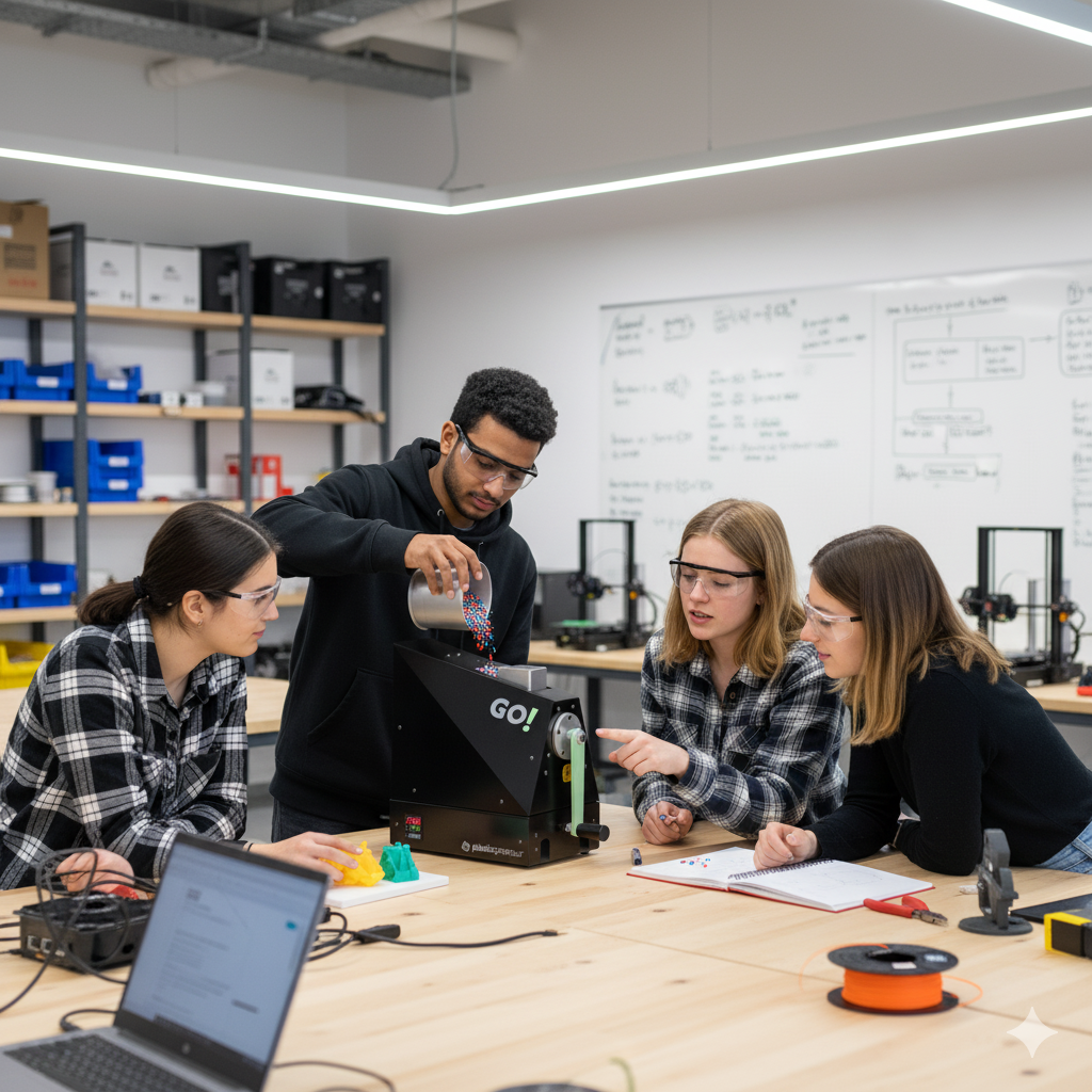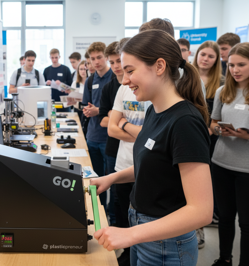 Create recycled plastic products on the spot in seconds. Simple, fun and easy to use. No prior knowledge required. Perfect for demonstration, workshops, events or hands-on-learning.